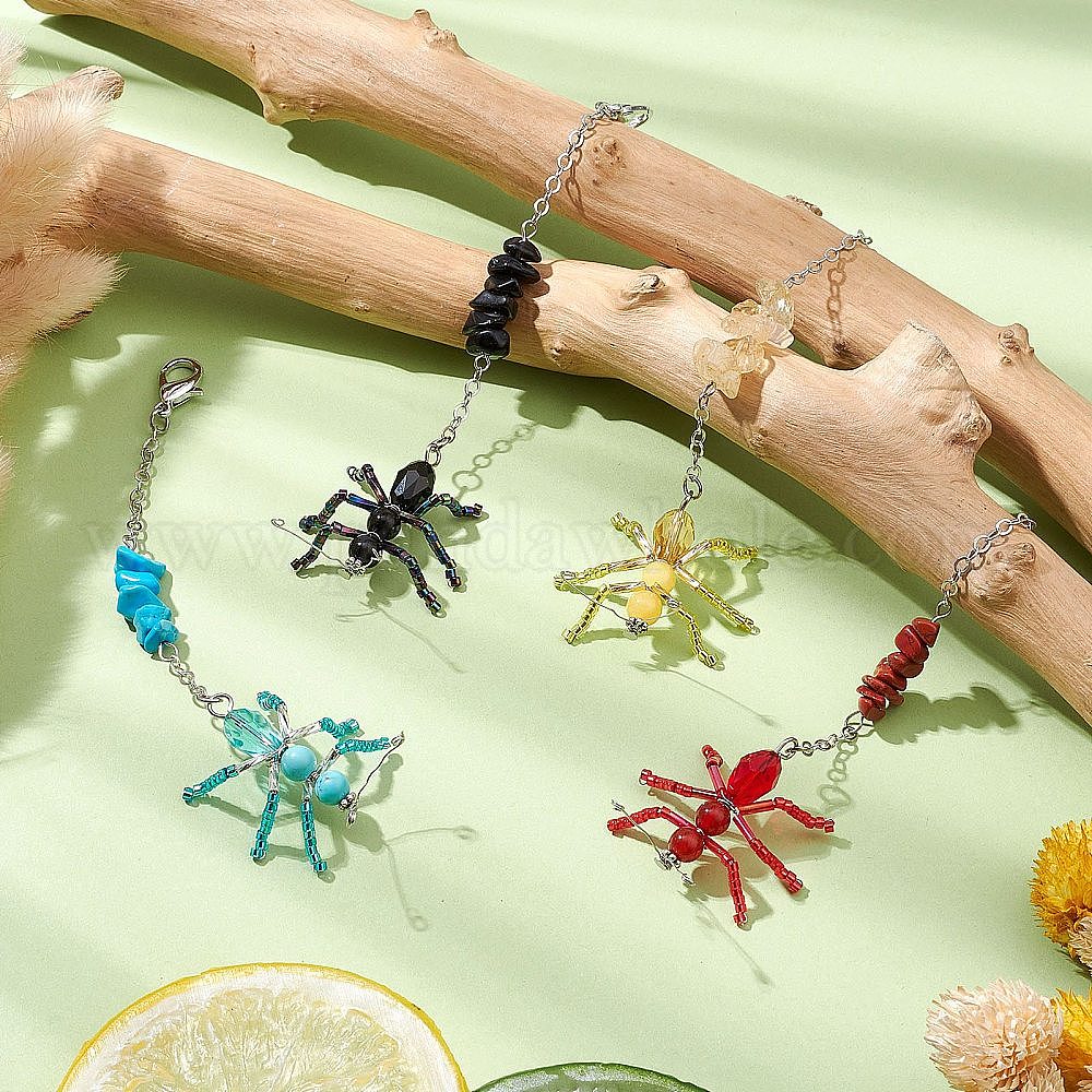 Подвески из бисера в виде муравья, натуральные и синтетические драгоценные камни и застежки-клешни из сплава для украшений сумок