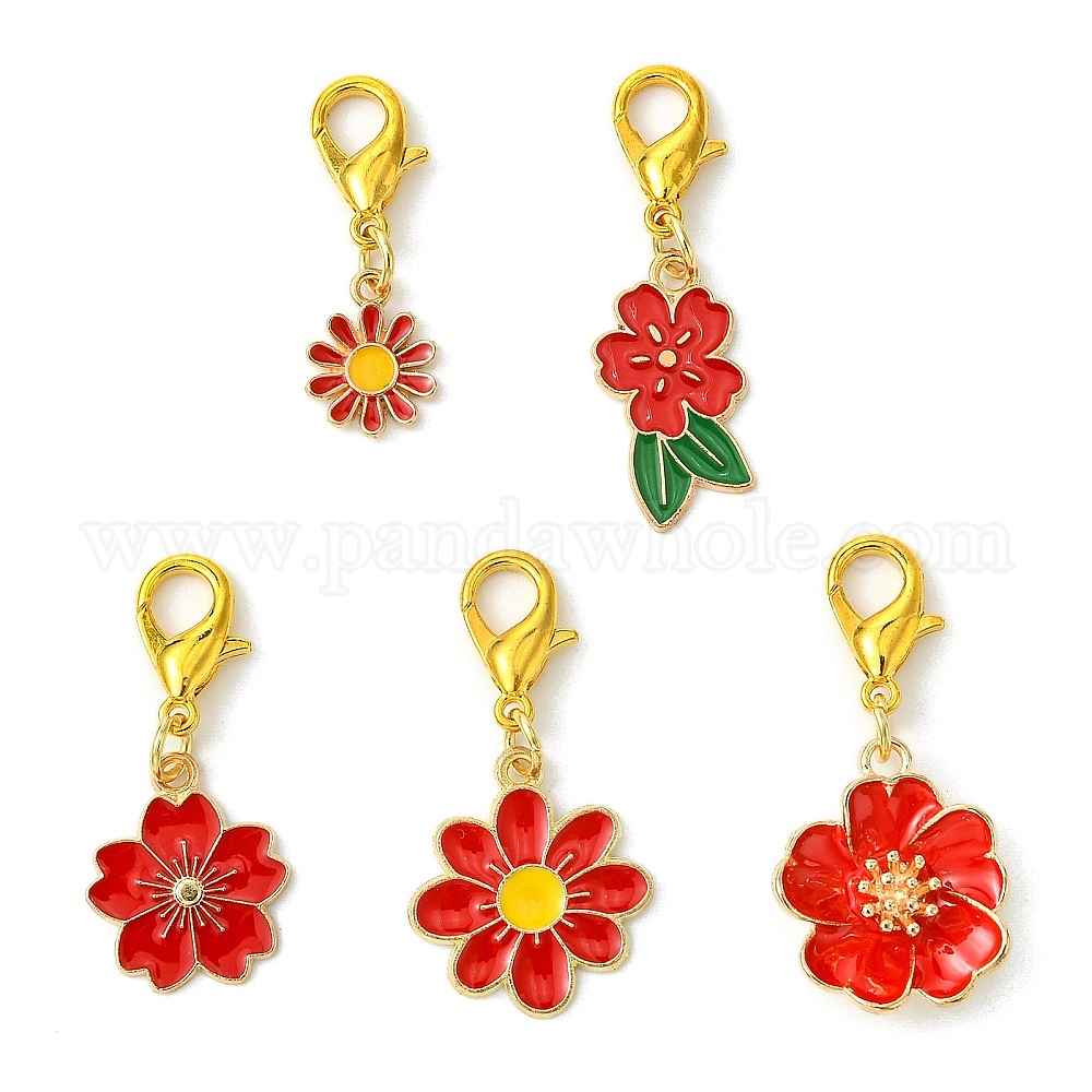 10 шт 5 стили цветочные сплавы эмаль подвесные украшения, застежки-клешни для украшений сумок