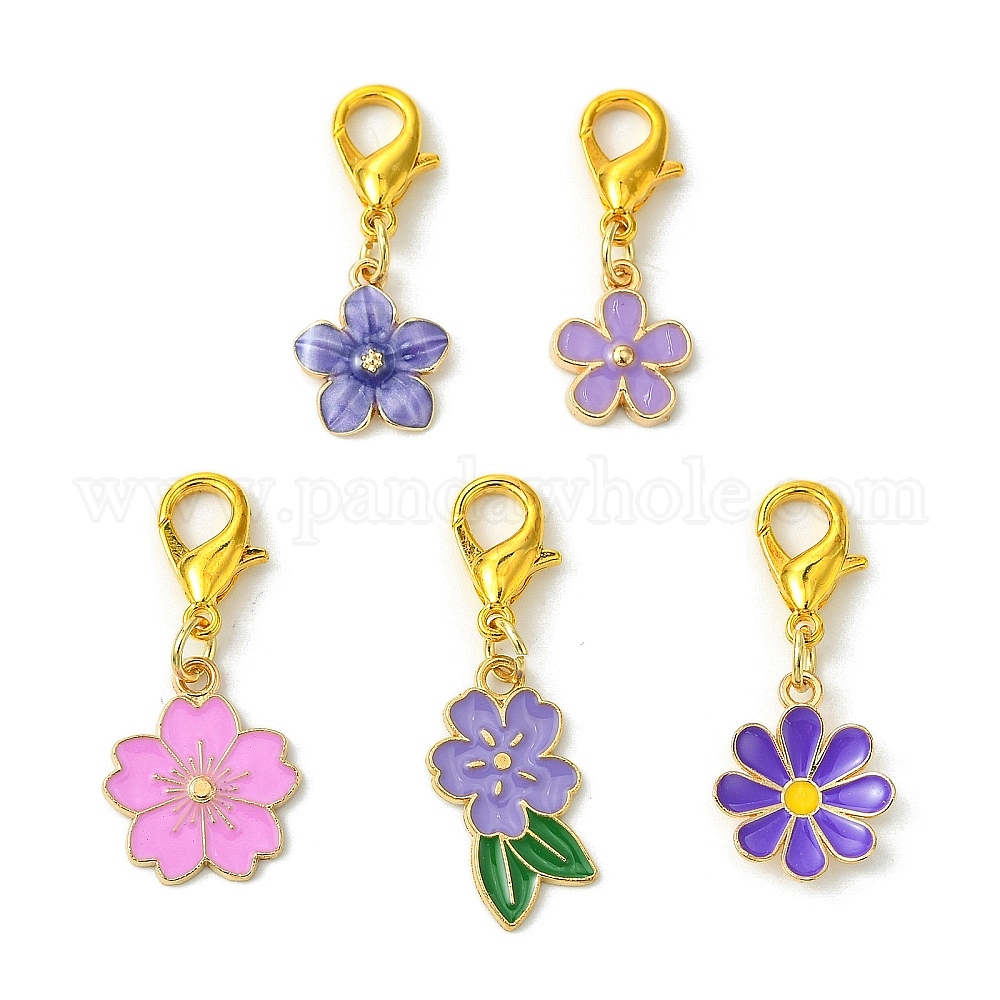 10 шт 5 стили цветочные сплавы эмаль подвесные украшения, застежки-клешни для украшений сумок