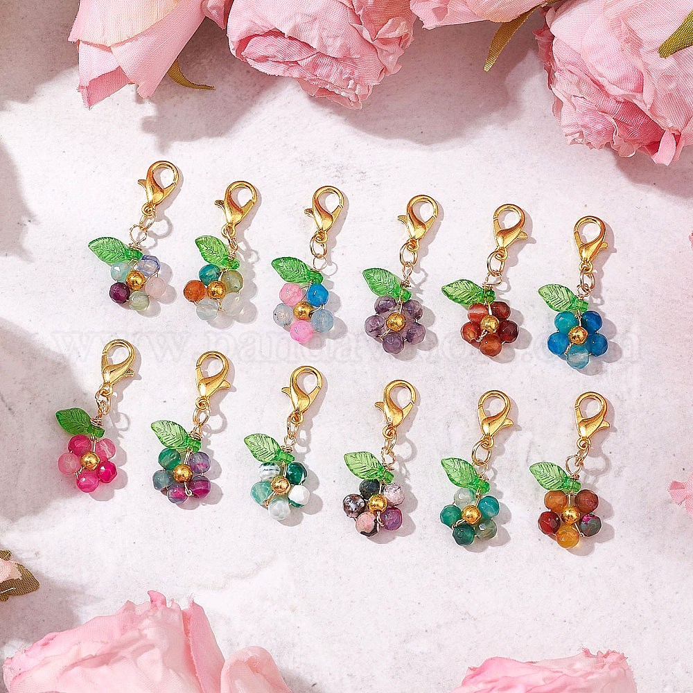 Подвески из натурального окрашенного и нагретого агата в виде цветка, Застежки-когти из сплава омара, подвески для украшений сумок (02ZPKE)