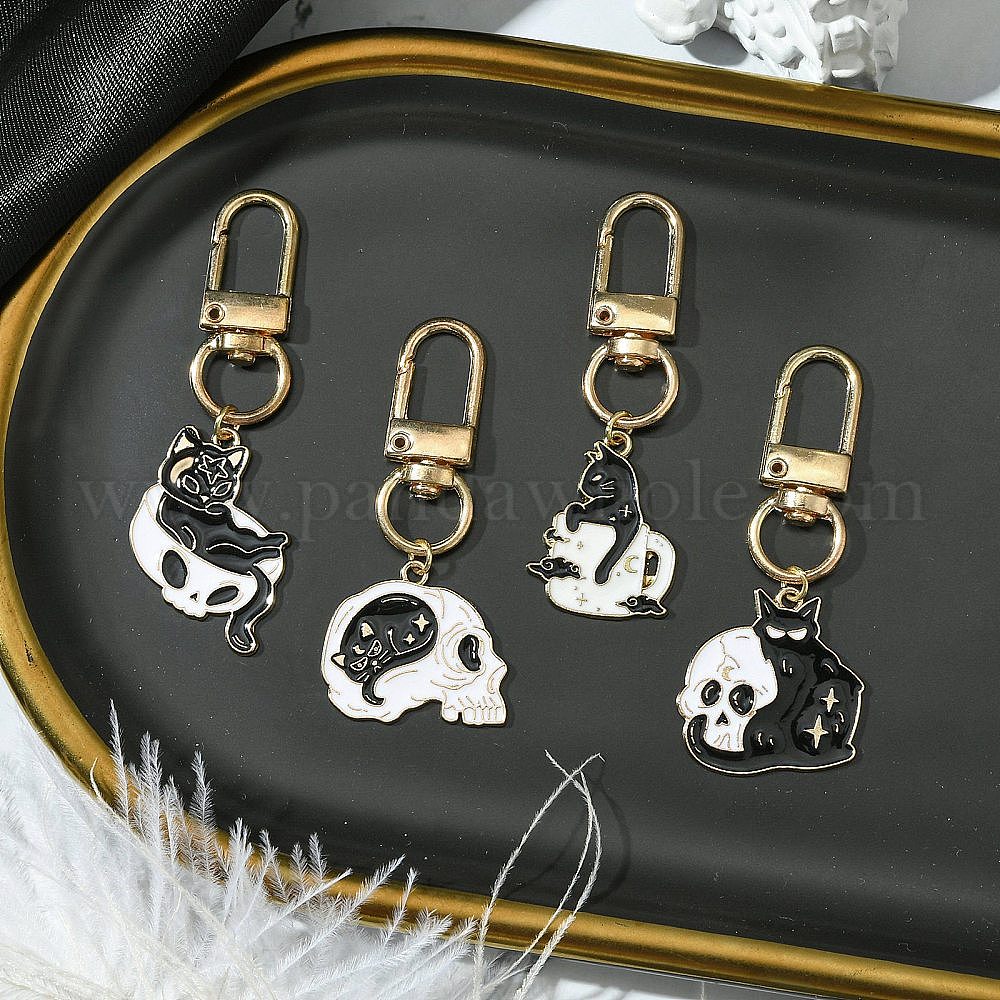 4 шт 4 стили кошачий череп сплав эмаль подвеска украшение, Поворотные застежки-подвески для украшений сумок