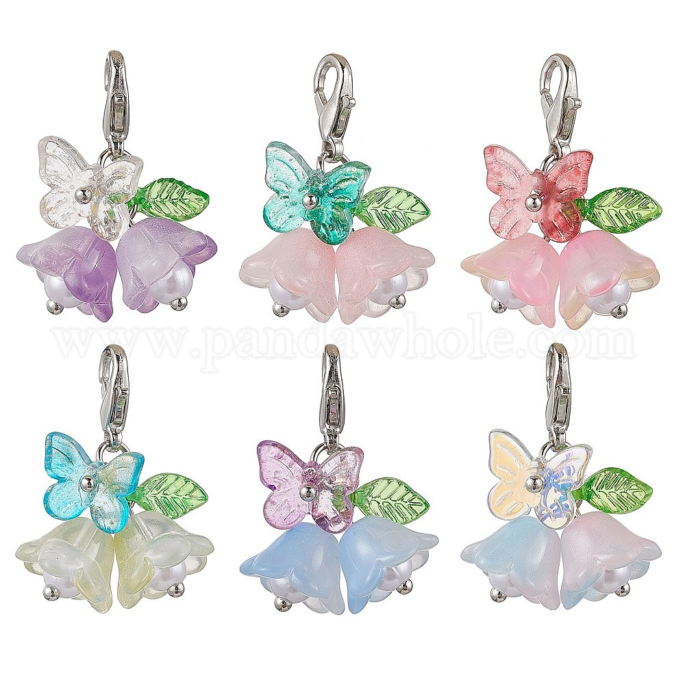 6шт. Цветочные стеклянные подвесные украшения, застежки из сплава подвески для украшений сумок