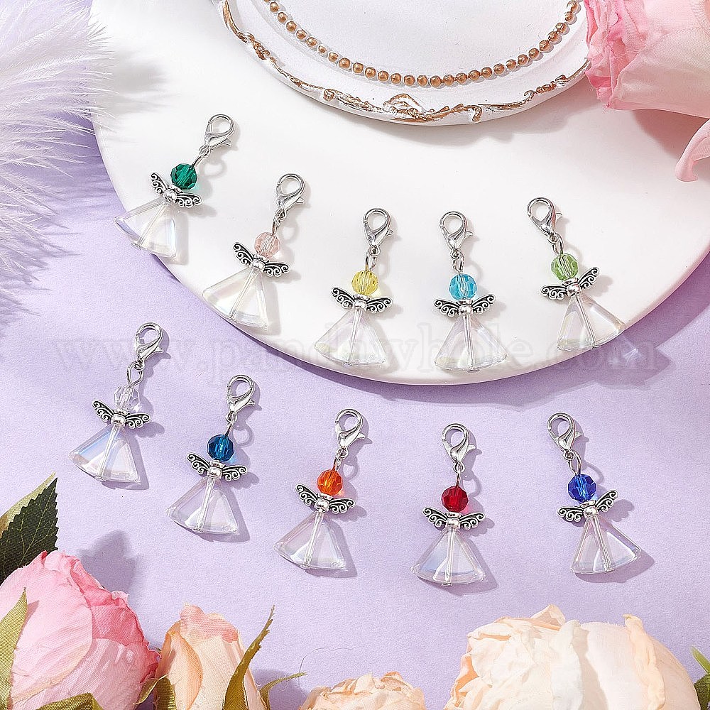 10шт 10цвета стеклянный ангел подвеска украшение, застежки из сплава подвески для украшений сумок