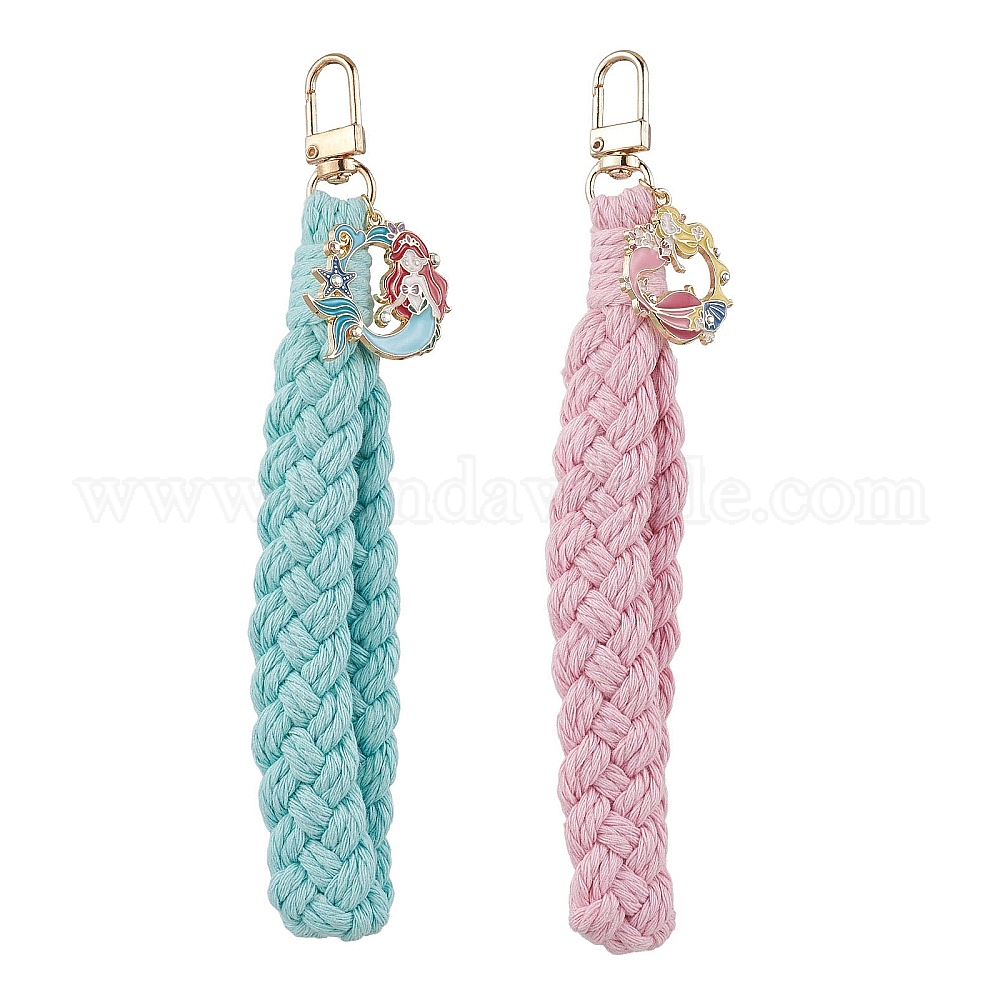 2шт 2цвета ручная работа тканые хлопковые подвесные украшения, Поворотные застежки и эмалевые подвески в виде русалки для телефона, рюкзака, брелока, украшений