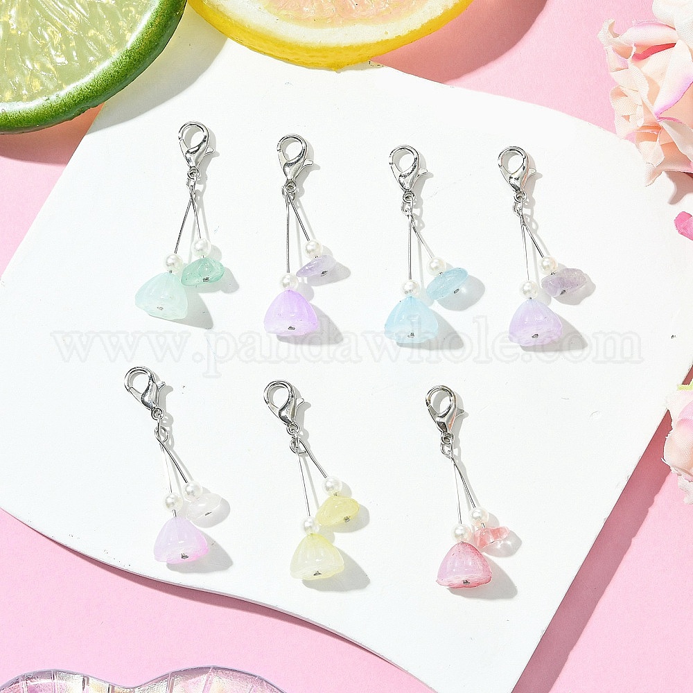 Подвесные украшения из акрила в виде стручка лотоса, натуральные и синтетические драгоценные камни и застежки-клешни для украшений сумок