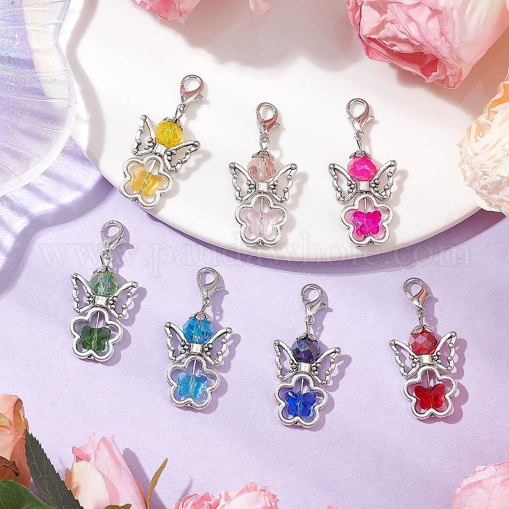 7шт 7 цвета ангел стеклянные подвесные украшения, Застежки-когти из сплава омара, подвески для украшений сумок