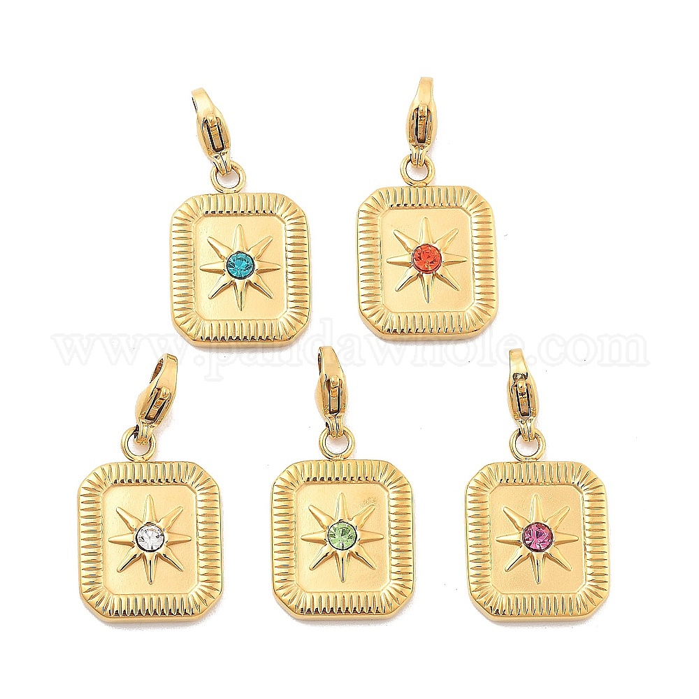 Прямоугольник со звездой 304 подвесные украшения из нержавеющей стали со стразами, украшения с застежкой в виде клешни лобстера, ионное покрытие (ip), реальный 14 k позолоченный