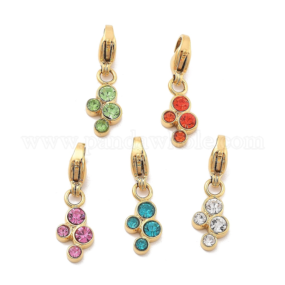 304 подвески из нержавеющей стали со стразами, украшения с застежкой в виде клешни лобстера, ионное покрытие (ip), реальный 14 k позолоченный