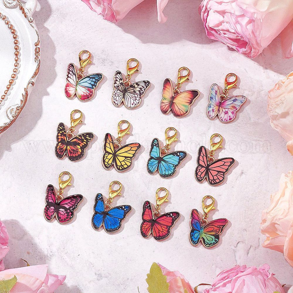 12шт 12 цвета бабочки сплава эмали подвески украшения, Подвески с застежками-когтями омара для украшения сумок