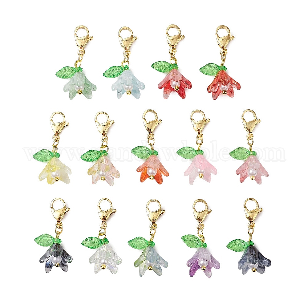 Подвесные украшения из стекла лилии, Подвески с застежками-когтями омара для украшения сумок