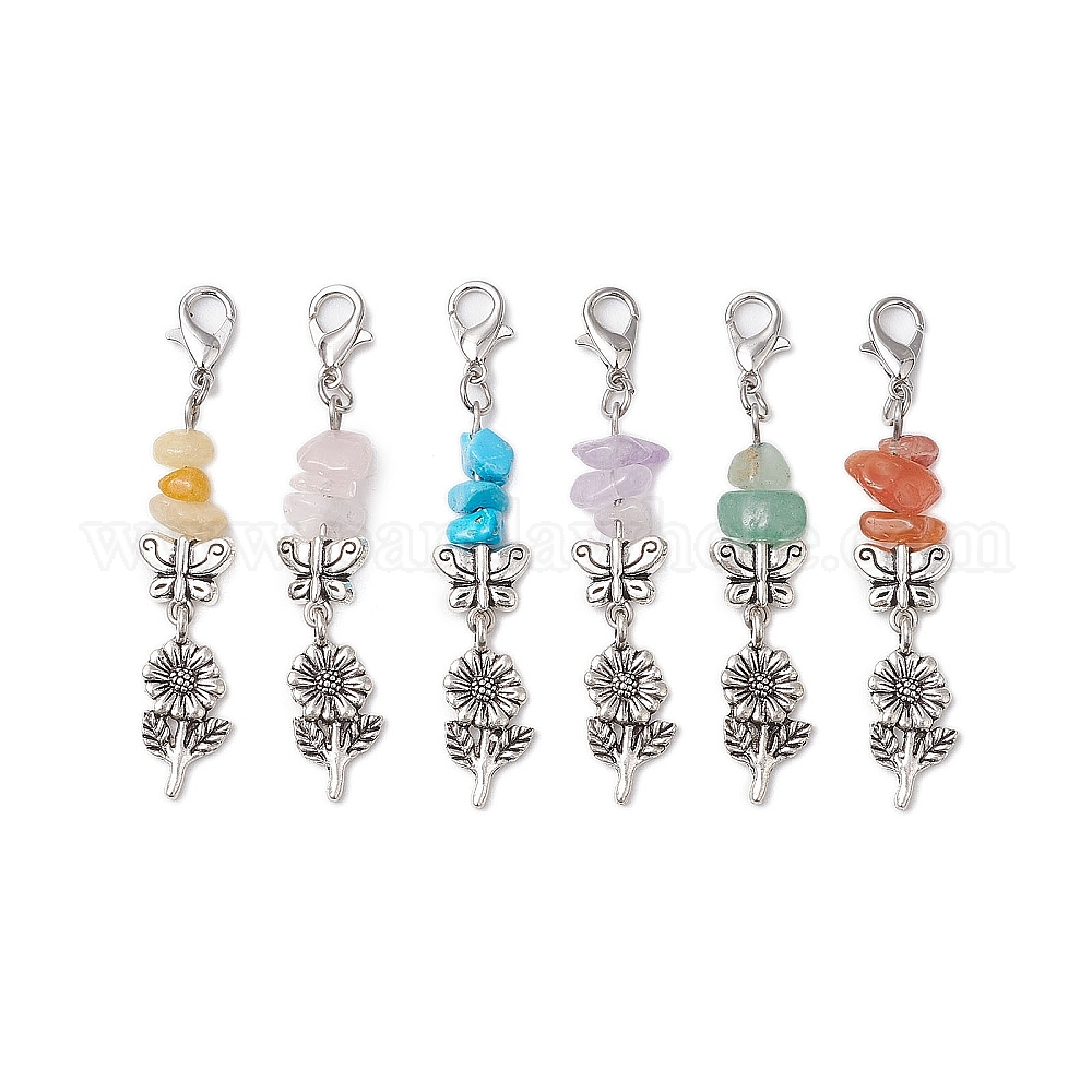 • Смешанные камни 6шт. бабочка подсолнух сплав подвеска украшения, натуральные и синтетические драгоценные камни и застежки-клешни для украшений сумок, 57 мм