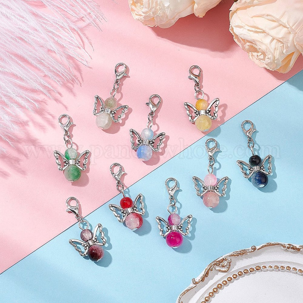 9 шт. ангельские стеклянные подвесные украшения, Застежки-когти из сплава омара, подвески для украшений сумок