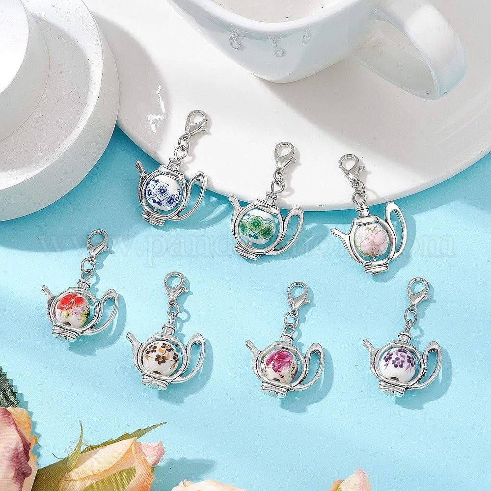 Чайник ручной работы с цветочным принтом фарфоровые керамические бусины подвесные украшения, с цинковым сплавом застежками омаров коготь