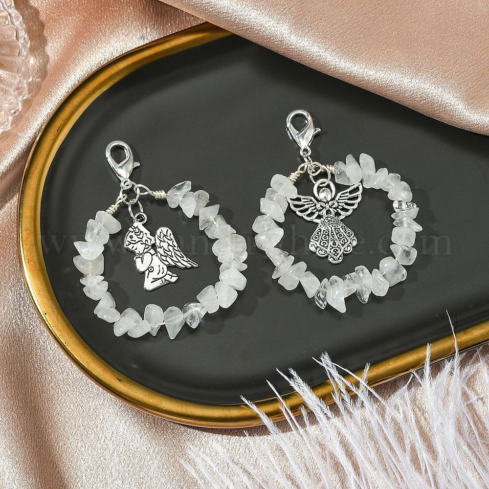 • Хрусталь Подвеска с ангельской тематикой из натурального кварцевого кристалла, с застежками-когтями и подвесками из цинкового сплава, 63 мм, 2 шт / комплект