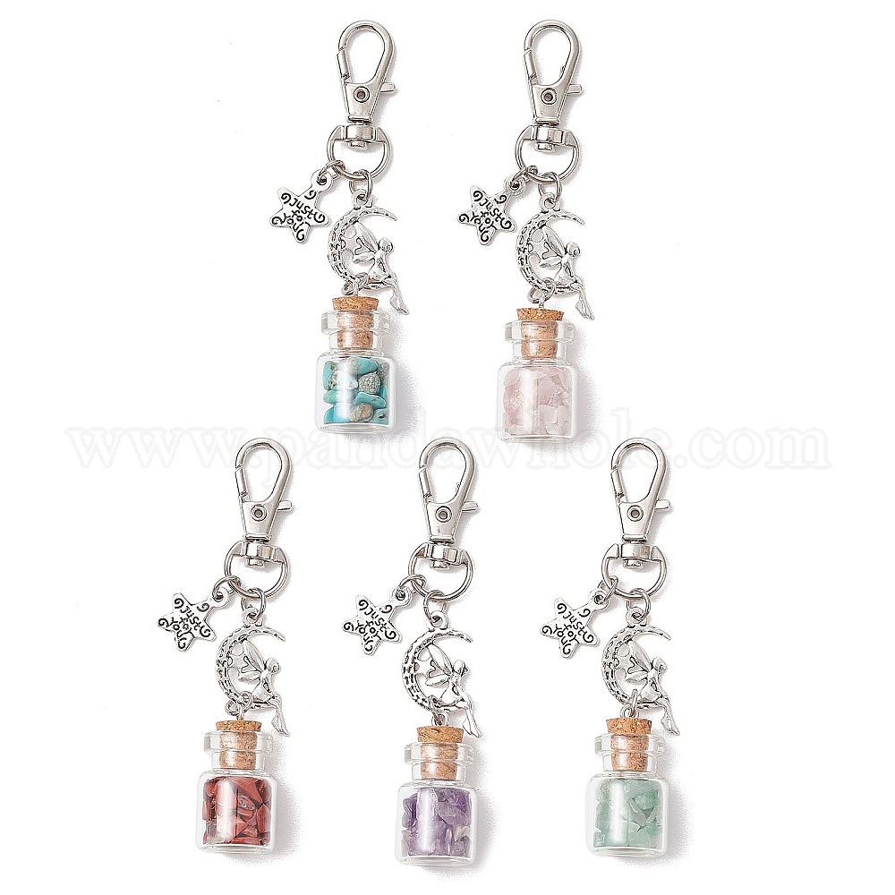 Стеклянная бутылка желаний подвеска украшения, с поворотными застежками из сплава и бусинами из драгоценных камней
