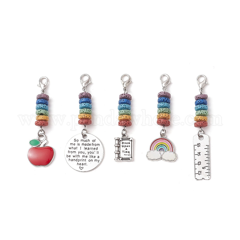 • Mixed Shapes 5шт. День учителя подвеска из сплава украшения, Бусины из натуральной лавы и застежки-клешни лобстера, подвески для украшений сумок, разнообразные, 56~68 мм