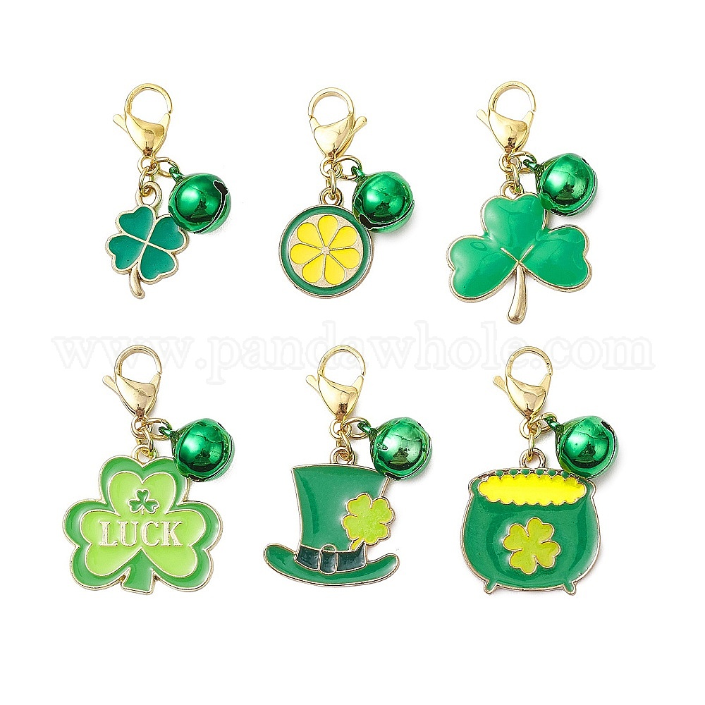 Подвески из сплава с эмалью ко Дню Святого Патрика, украшения, застежка-лобстер и латунные подвески-колокольчики для украшения сумок