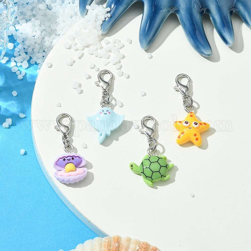 4 шт 4 стили морской организм смоляной кулон украшение, Застежки-когти из цинкового сплава, подвески для украшений сумок, форма рыбы/морской звезды/черепахи/панциря