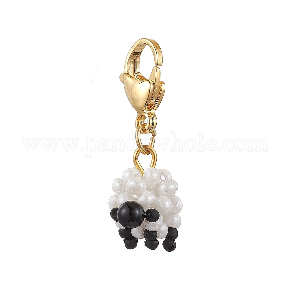 Подвеска из бисера в виде овцы, подвески из натурального черного оникса и застежек-клешней лобстера для украшений сумок