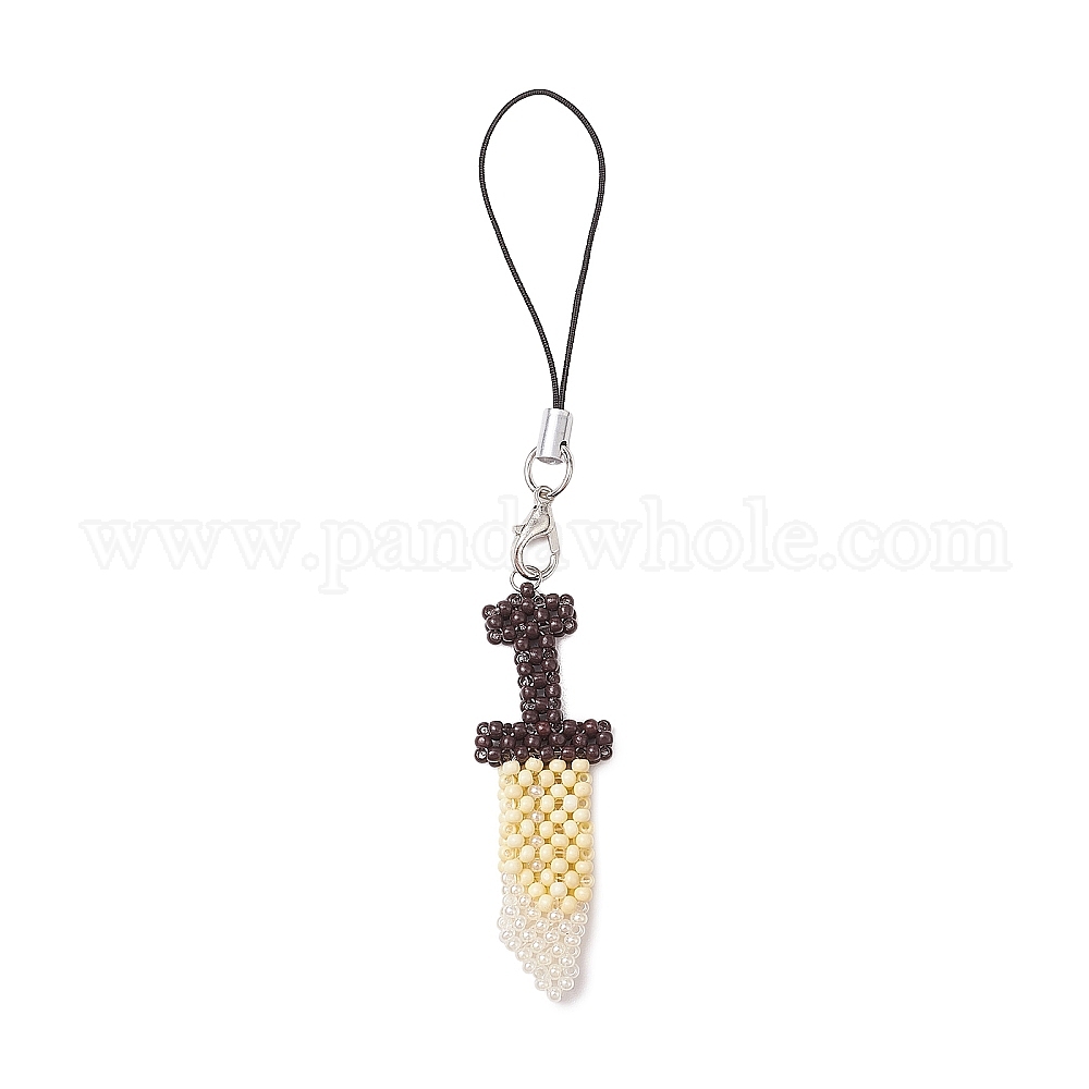 Подвеска в виде меча из стеклянного бисера, нейлоновый шнур для брелока для сумки для мобильного телефона украшения