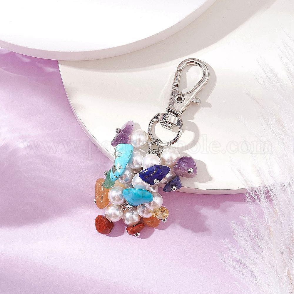 Подвески из натурального цитрина, красной яшмы, лазурита, аметиста, синтетической бирюзы, красного авантюрина, зеленых авантюриновых чипсов и ракушечного жемчуга, с поворотными застежками (031NHQ)