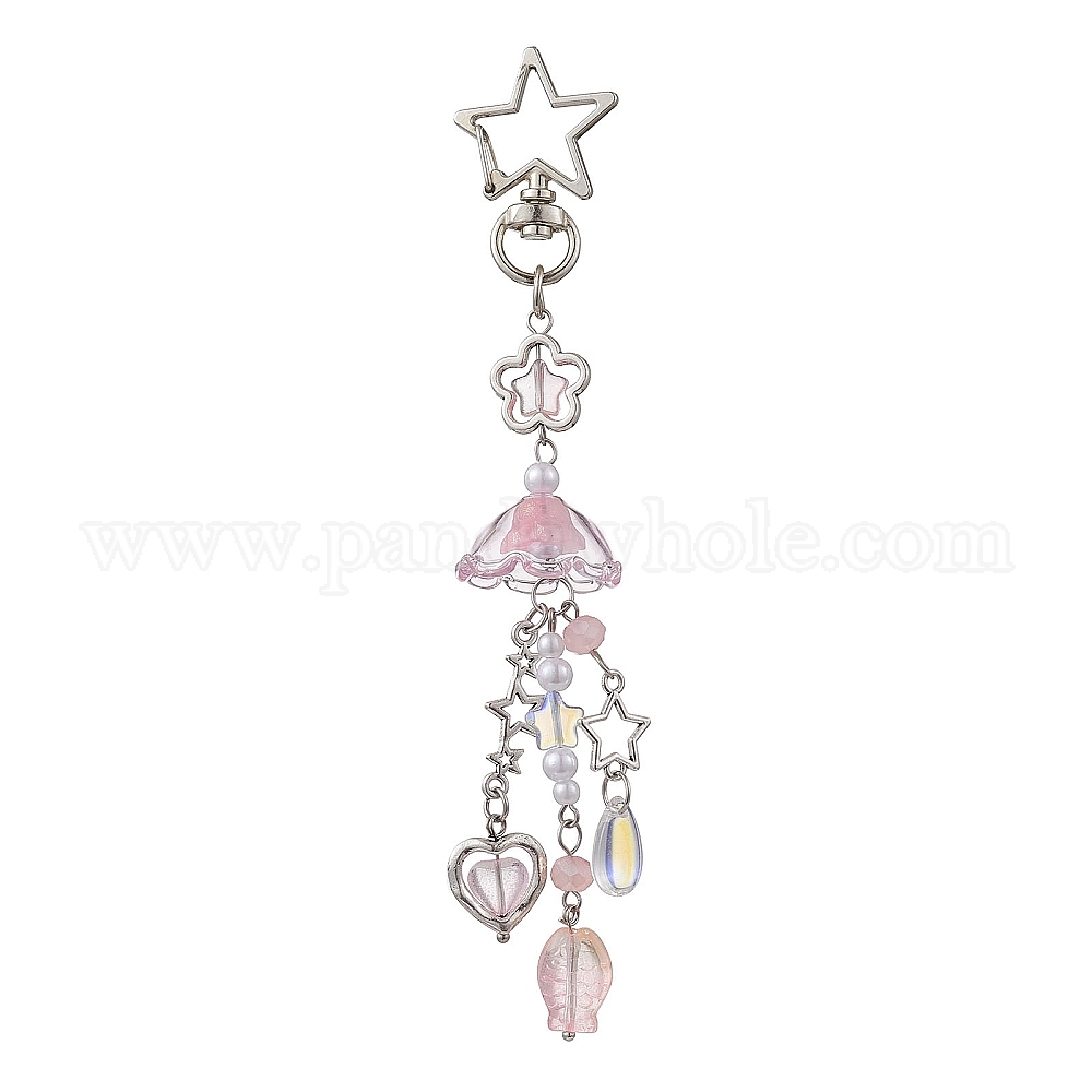 • Pink Подвесные украшения из стекла в виде медузы, сплав звездочка поворотные застежки подвески для украшения сумок, розовые, 140 мм