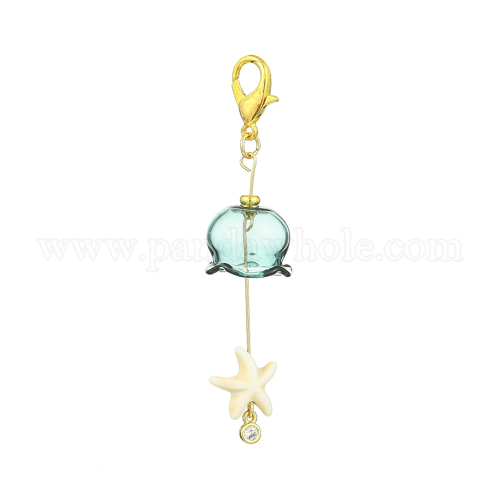 Подвески из стекла и латуни с кубическим цирконием и синтетическими бирюзовыми бусинами, украшения для подвесок, застежка-карабин из цинкового сплава для украшений сумок (031QF5)