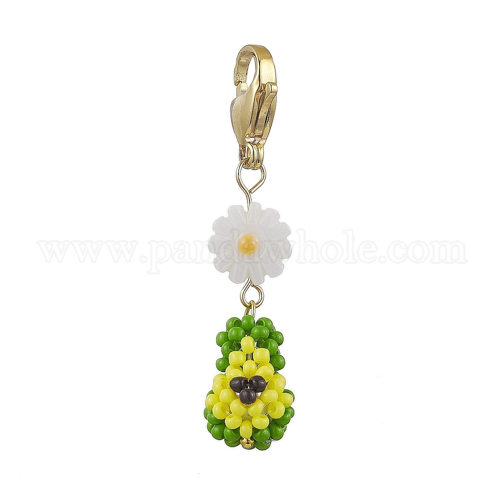 Подвесные украшения из бисера в виде стеклянных семян авокадо, Бусины из цветочного стекла и натуральных пресноводных ракушек, а также застежка-клешня лобстера для украшения сумок