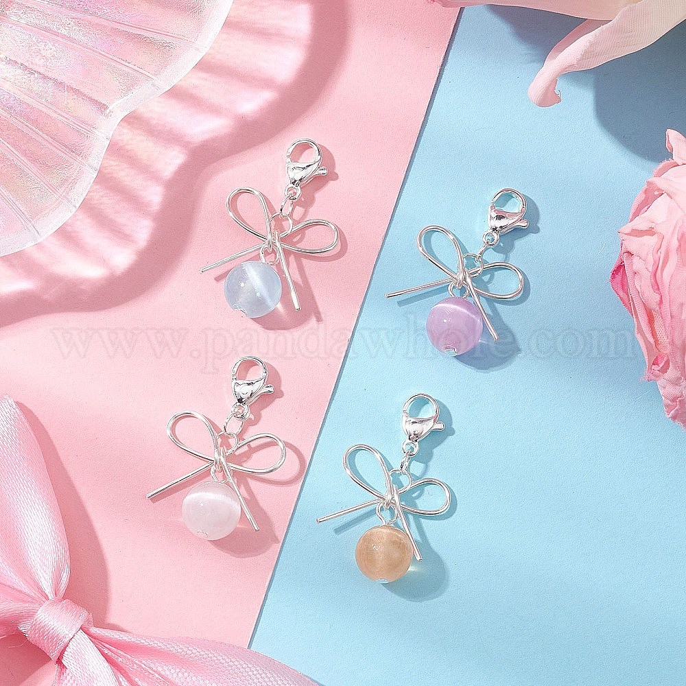 Круглый подвесной бант из натурального селенита и латуни, с 304 из нержавеющей стали Lobster Claw застежками