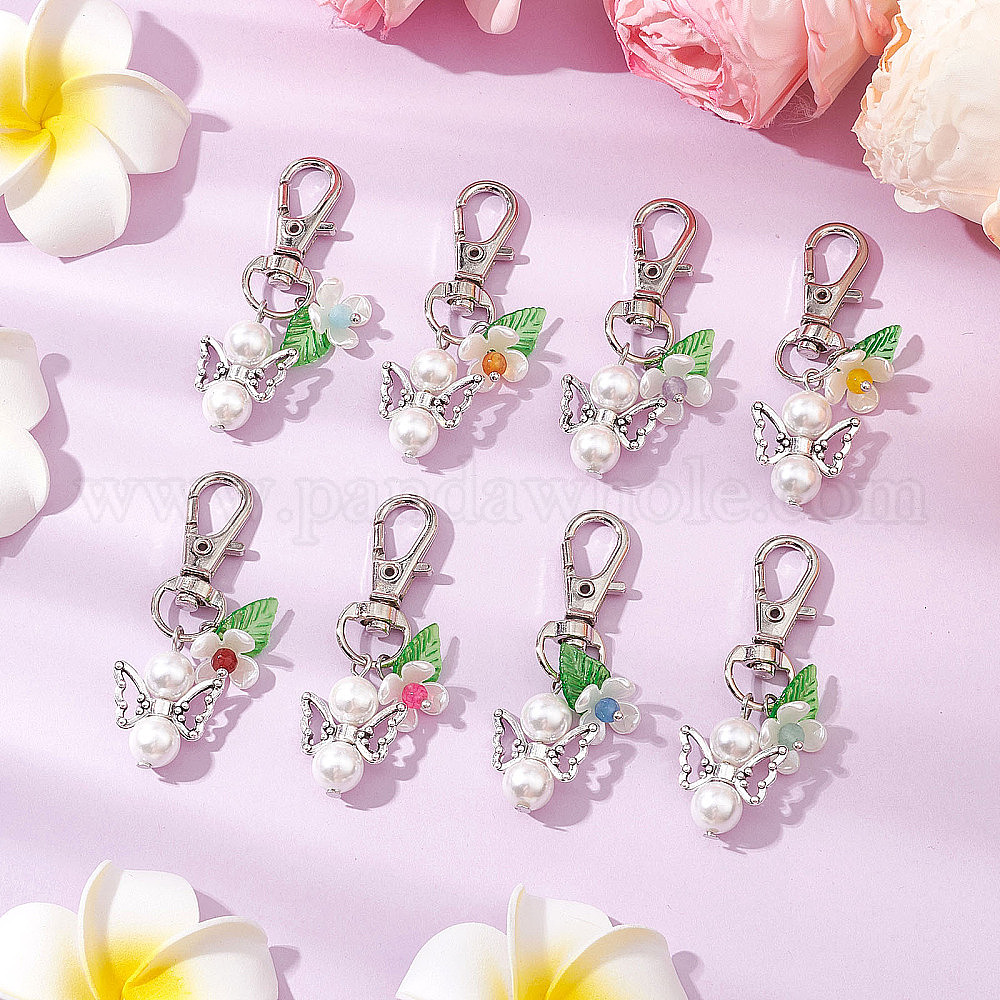 • Смешанные камни Цветочный ангел, абс-пластик, имитация жемчуга и акриловые подвесные украшения, подвески-застежки из натурального драгоценного камня и сплава для украшений сумок, 53.5 мм, 8 шт / комплект
