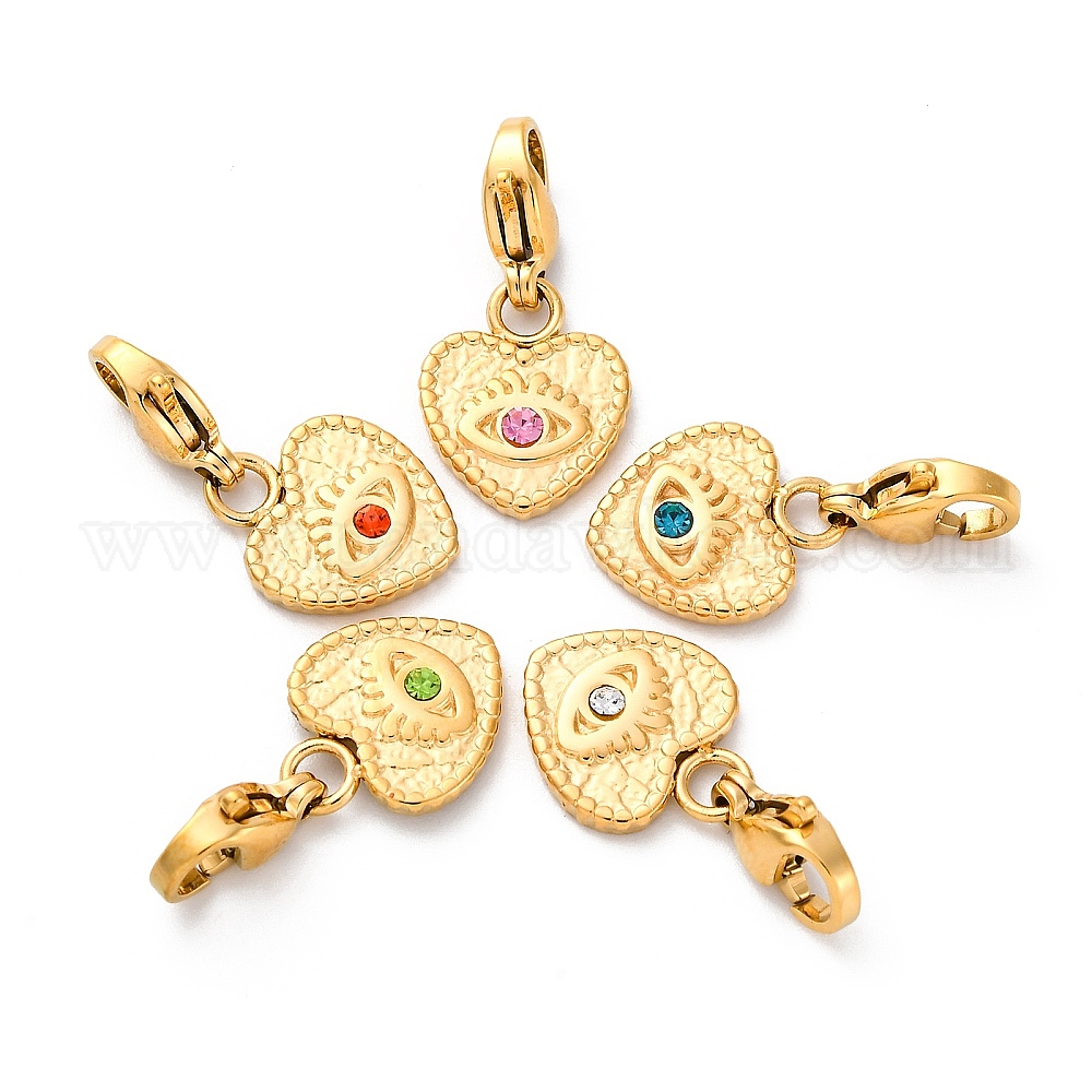 Сердце 304 подвеска из нержавеющей стали со стразами украшения, с застежкой в виде клешни лобстера, ионное покрытие (IP), реальный 14 k позолоченный