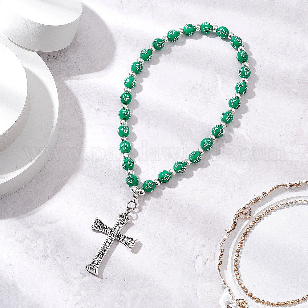 Крест сплав подвески украшения, с круглыми акриловыми бусинами с покрытием