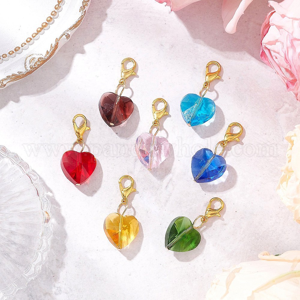 7шт 7цвета граненые сердечки стеклянные подвески украшения, с цинковым сплавом застежками омаров коготь