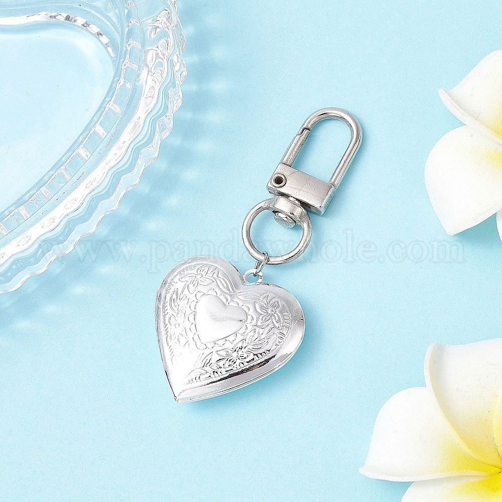 • Серебро Латунный медальон в форме сердца, подвеска, украшения, Поворотные застежки-брелки для украшения сумок, серебряные, 63.5 мм