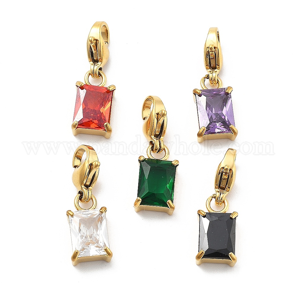 • Гиацинт Прямоугольник 304 подвеска из нержавеющей стали со стразами, с карабин-лобстерами , ионное покрытие (ip), реальный 14 k позолоченный, гиацинт, 20 мм