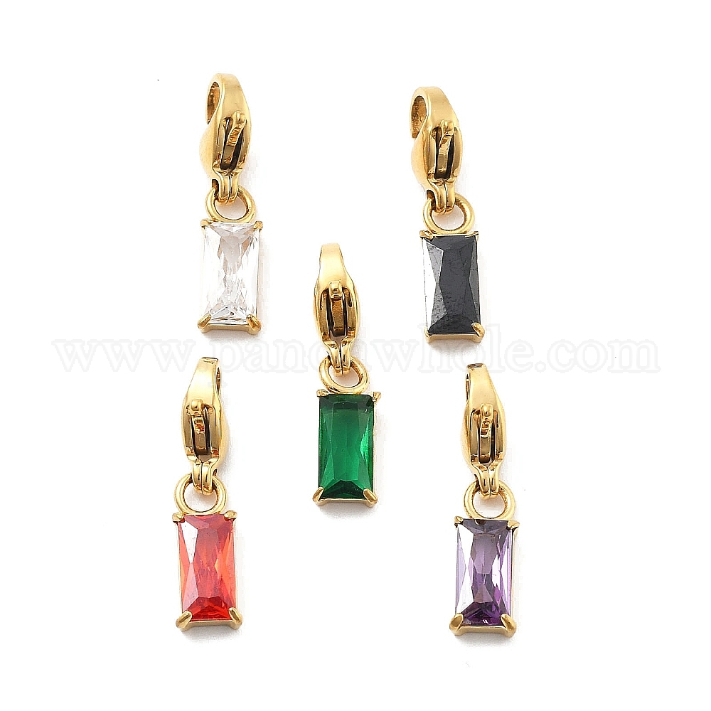 Прямоугольник 304 подвеска из нержавеющей стали со стразами, с карабин-лобстерами , ионное покрытие (ip), реальный 14 k позолоченный