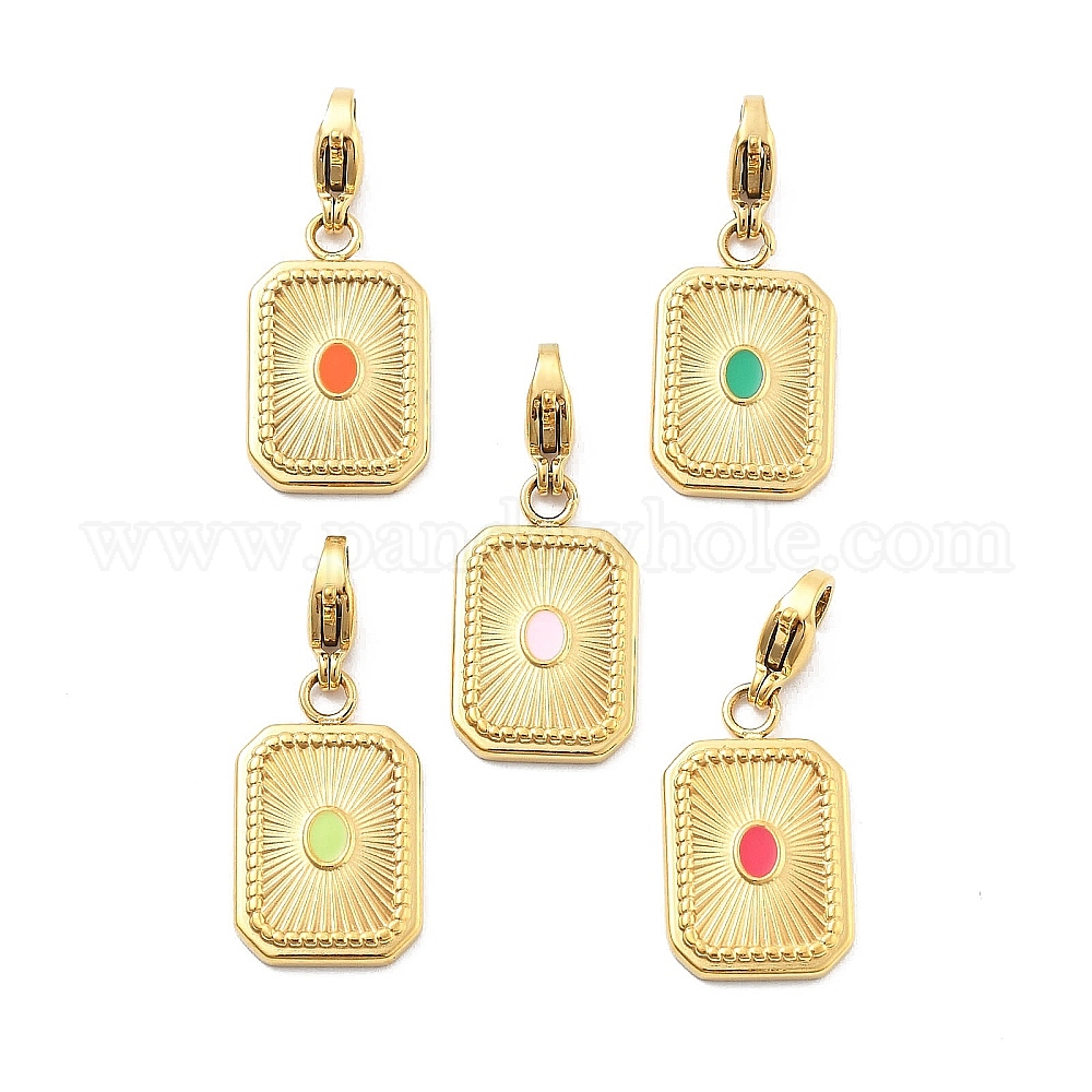 304 подвеска из эмали из нержавеющей стали, прямоугольник амулеты, ионное покрытие (ip), реальный 14 k позолоченный