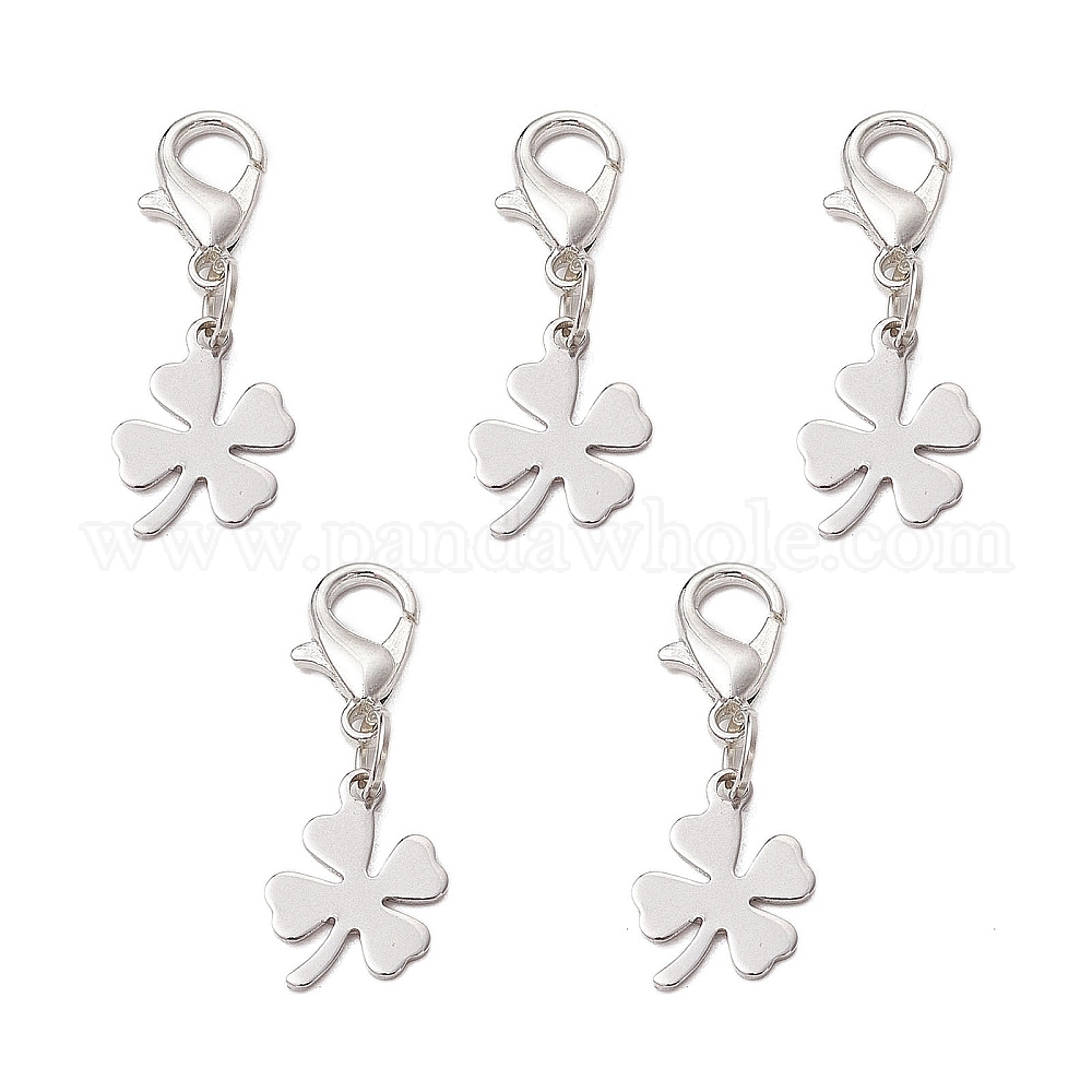 • Платиновый & Цвет Нержавейки 5 шт. клевер 201 подвесные украшения из нержавеющей стали, застежки-карабины из цинкового сплава для украшений сумок, платины и нержавеющая сталь цвет, 27 мм
