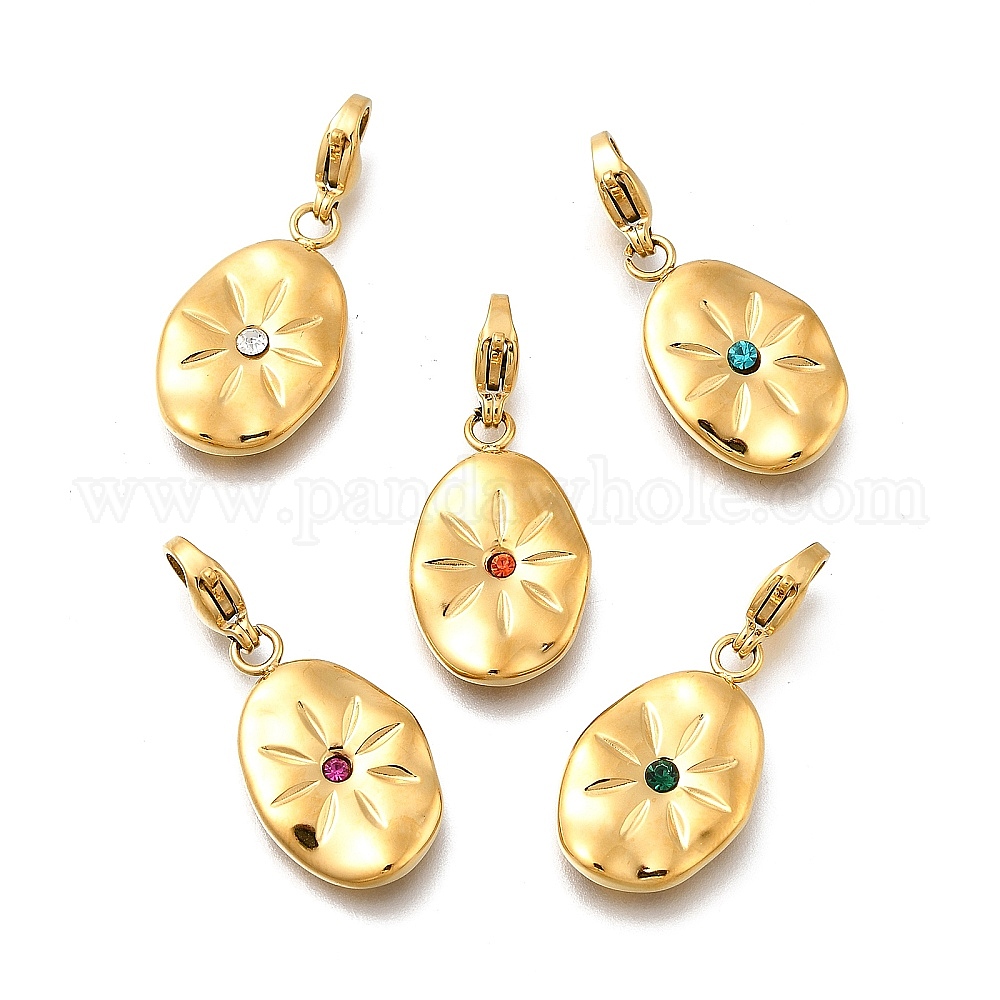 Овальная 304 подвеска из нержавеющей стали со стразами, с карабин-лобстерами , ионное покрытие (ip), реальный 14 k позолоченный