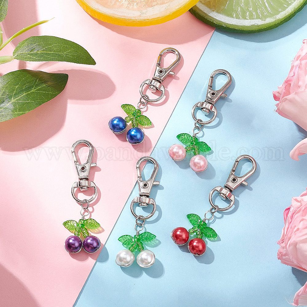 Подвесные украшения из вишневой медной проволоки, стеклянные жемчужины, Поворотные застежки из сплава, подвески для украшений сумок