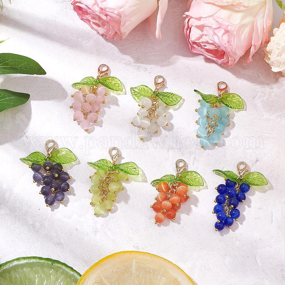 7 шт 7 цвета виноград кошачий глаз подвеска украшения, Подвески с застежками-когтями омара для украшения сумок