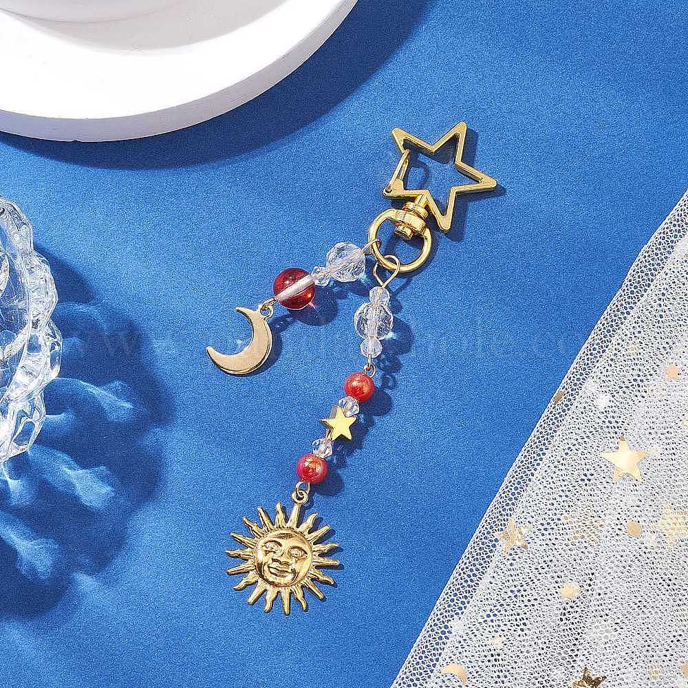 Гальванизированные стеклянные бусины с латунными бусинами подвески из латуни и 201 подвески из нержавеющей стали непрозрачные акриловые бусины украшения, Солнце и луна