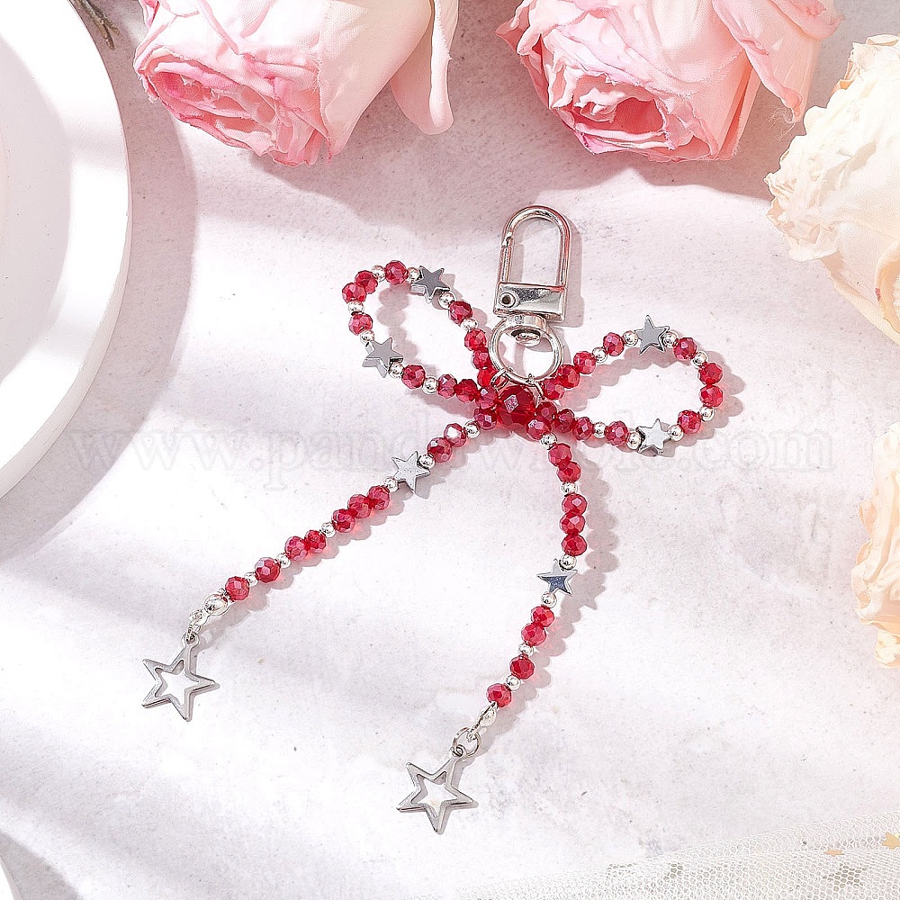Стеклянные бусины с 304 подвесками из нержавеющей стали и поворотными застежками из сплава, бантом