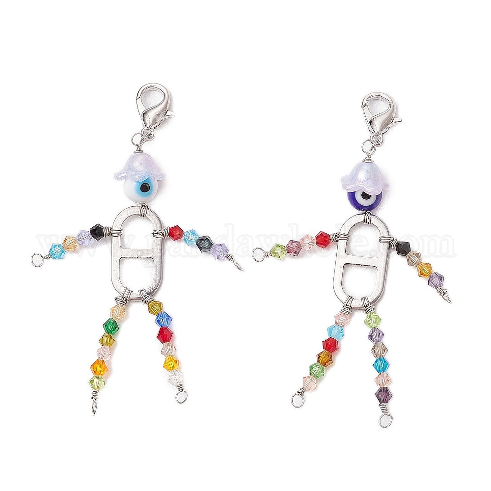 Круглые бусины ручной работы в стиле лэмпворк от сглаза с имитацией австрийских хрустальных бусин и 201 звеньями из нержавеющей стали и застежками-лобстерами из цинкового сплава