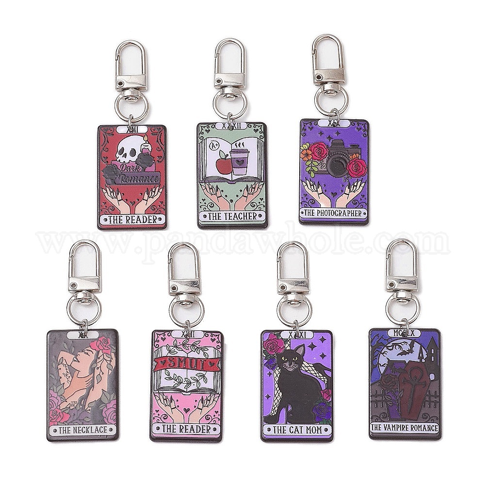 Акриловые подвески с поворотными застежками из сплава и 304 украшениями из соединительных колец из нержавеющей стали, прямоугольник с темами таро
