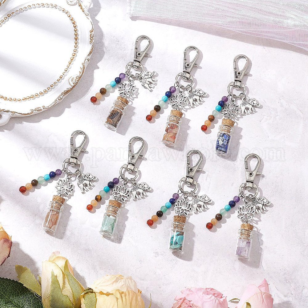 Стеклянная бутылка желаний с натуральными и синтетическими драгоценными камнями чакра внутри подвесных украшений, подвески из сплава в виде слона-лотоса и поворотных застежек для украшений сумок