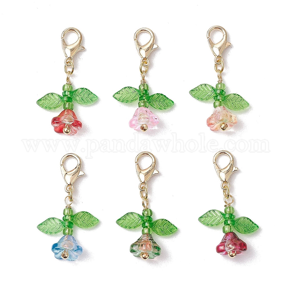 Подвесные украшения из цветочного стекла и акриловых бусин, Сплав с застежками когтя омара