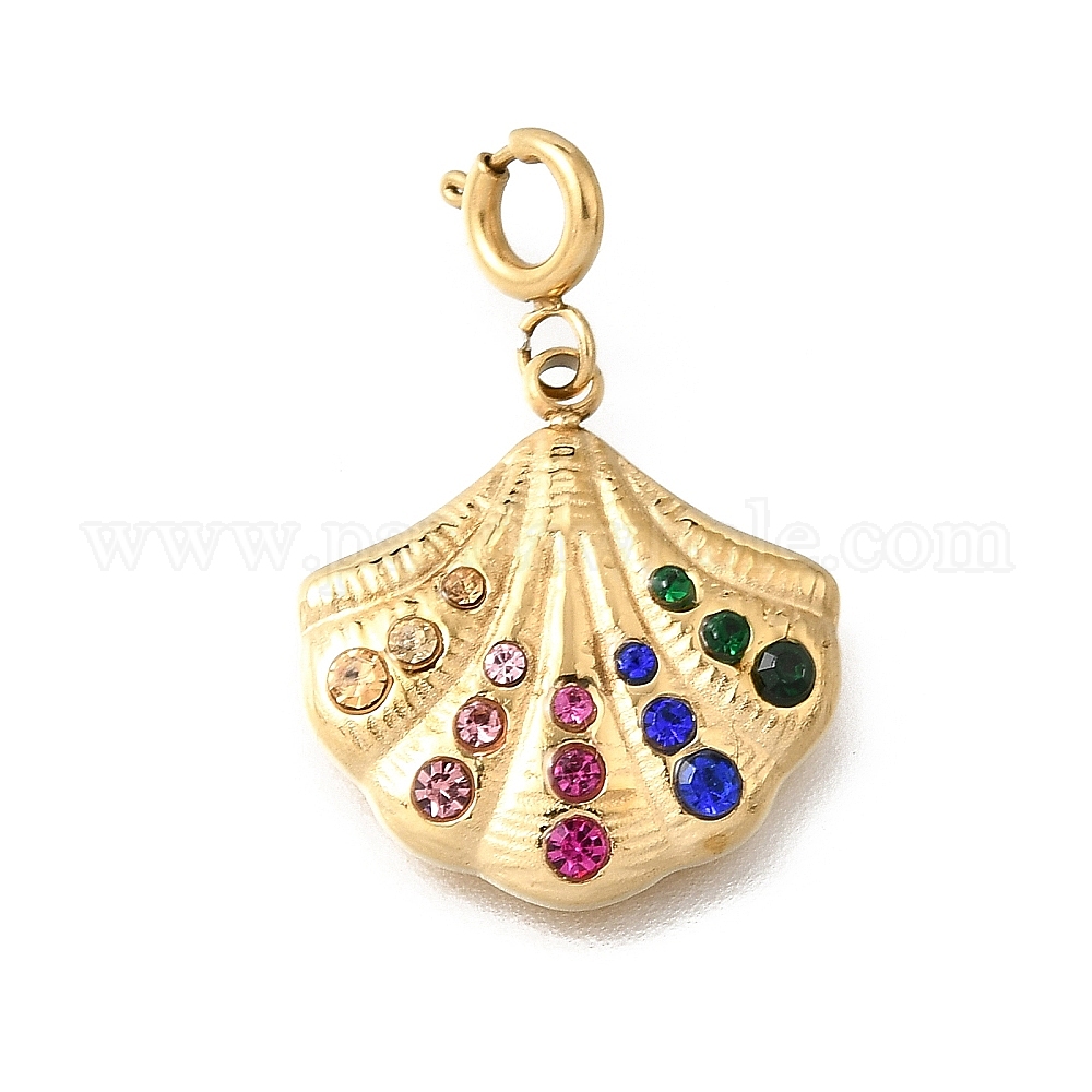 Раковина 304 подвеска из нержавеющей стали с разноцветными стразами, с застежками пружинного кольца, ионное покрытие (ip)