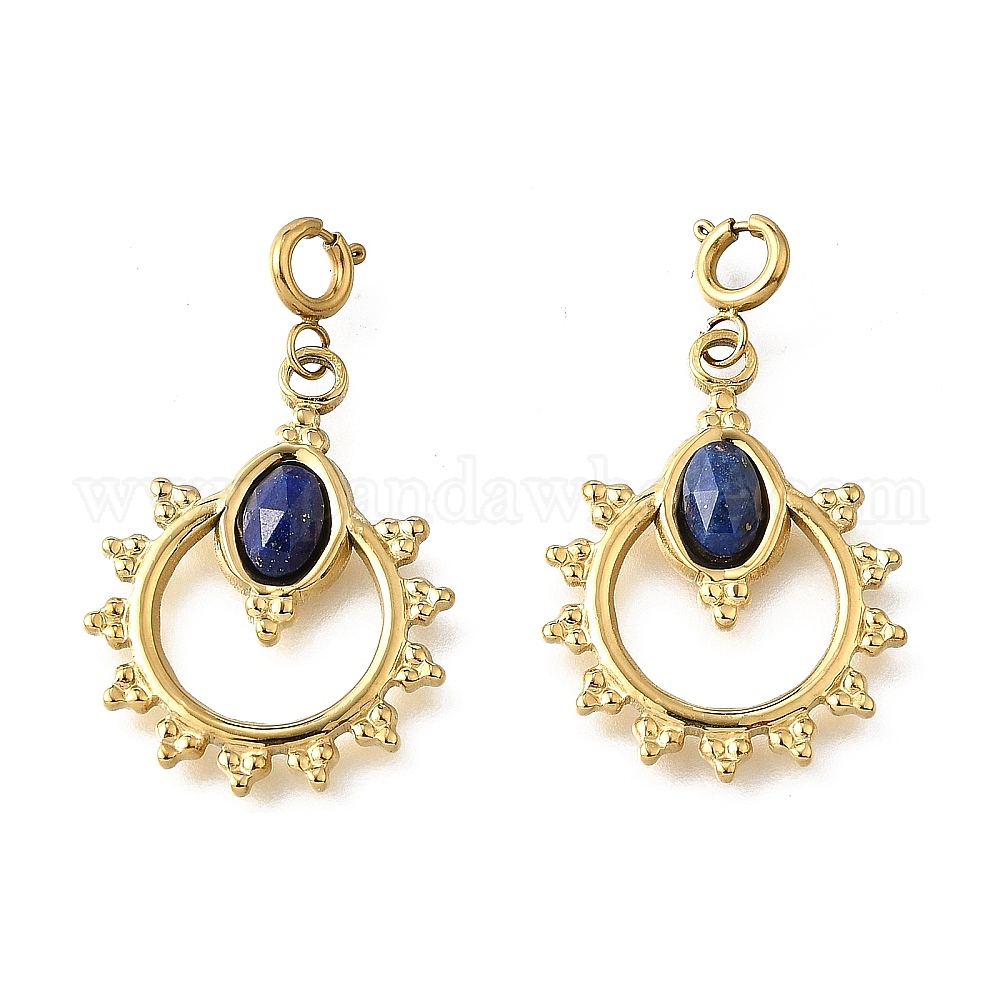 Кольцо и овал 304 подвесные украшения из нержавеющей стали, с натуральным лазуритом и застежками-пружинными кольцами, ионное покрытие (ip)