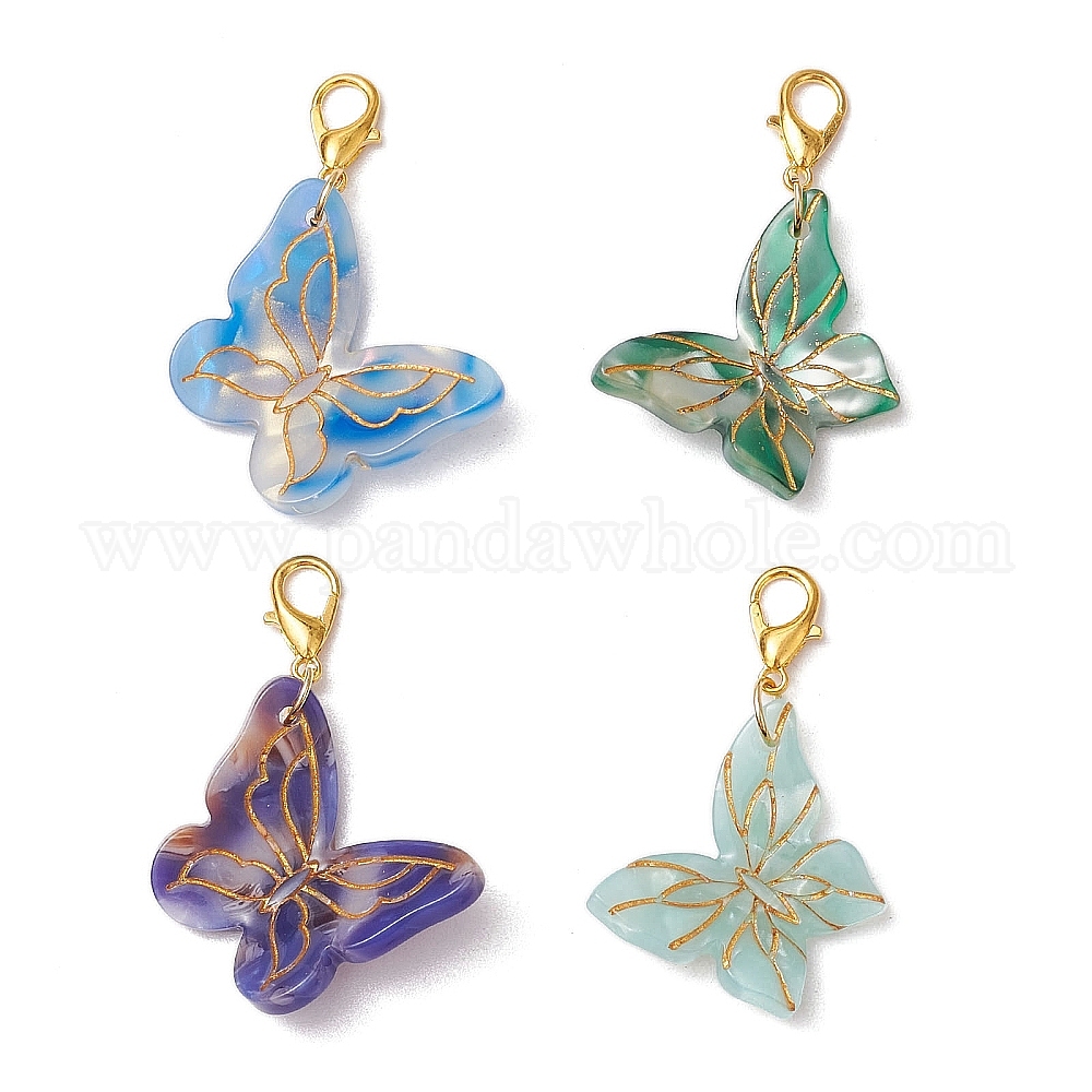 4шт 4 цвета бабочка ацетат целлюлозы (смола) подвеска украшение, Сплав с застежками когтя омара (032F1Y)